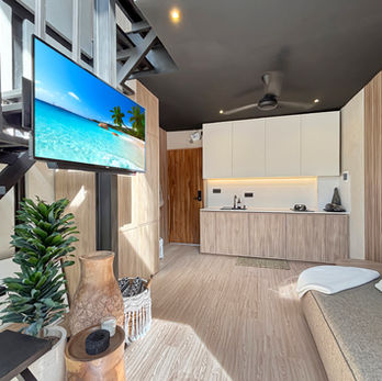 Immerse yourself in the comfort of Moon Studio Canggu with it's private pool garden and outdoor area, fully equipped kitchen, luxury bathroom, living area, and loft bedroom. Experience the allure of modern Bali design and ammenities.